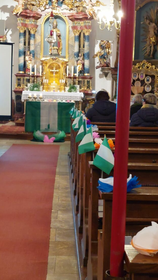 Über 70 Frauen aus der gesamten Pfarreiengemeinschaft Marxheim-Daiting kamen am Freitag, 6. März, in der Pfarrkirche St. Nikolaus in Gansheim zum Weltgebetstag der Frauen zusammen. Der Gottesdienst stand unter dem Motto „Kommt! Bringt eure Last“. Die Liturgie für den diesjährigen Weltgebetstag wurde von Christinnen aus Nigeria vorbereitet – passend dazu war die Kirche mit landestypischen…